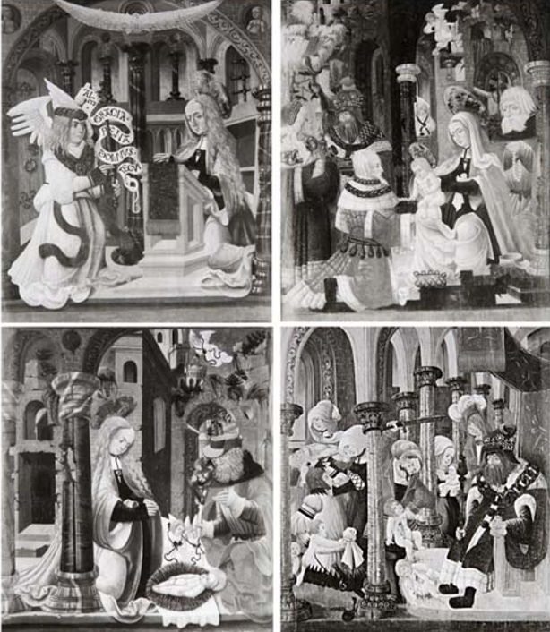 Die Malerei der Flügelaußenseiten stammt unzweifelhaft von einem Maler aus dem Salzburgischen. Dargestellt werden hier vier Szenen aus der Jugendgeschichte Christi. Auf dem linken Flügel oben die Verkündigung an Maria, darunter die Geburt Christi. Auf dem rechten Flügel oben die Anbetung durch die Weisen aus dem Morgenland, darunter der Kindermord zu Bethlehem.